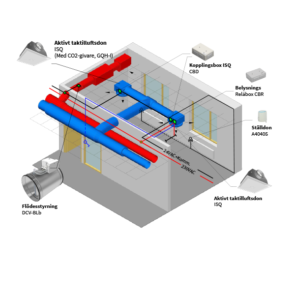 - Anvendes til enten at måle, vedligeholde, opsummere eller afbalancere luftstrømme på en måde, der giver stor fleksibilitet i design af faciliteter.