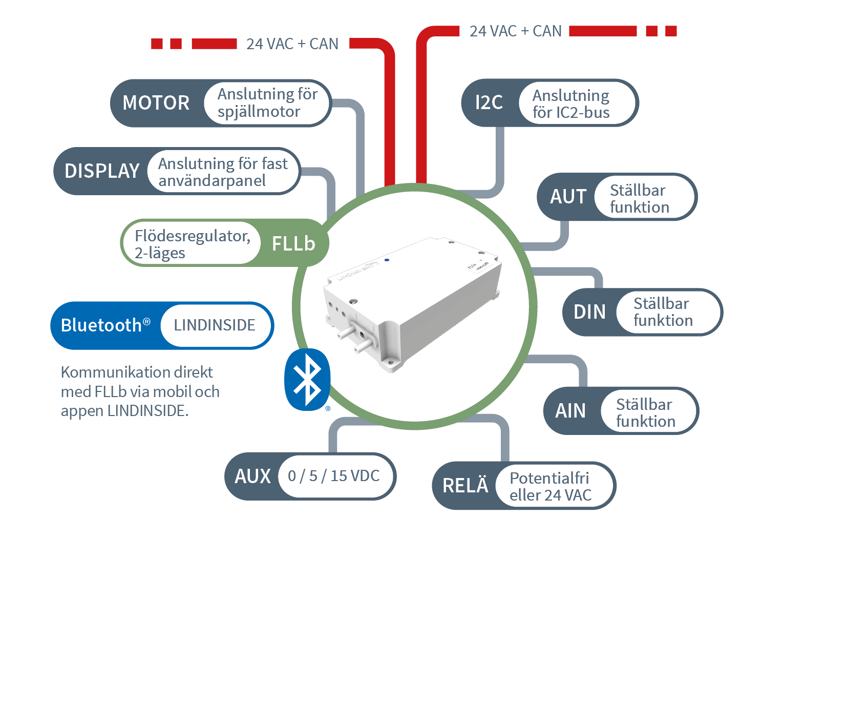 - Regulatoren har parametre, der kan aflæses og styres fra LINDINTELL / LINDINSPECT via CAN.