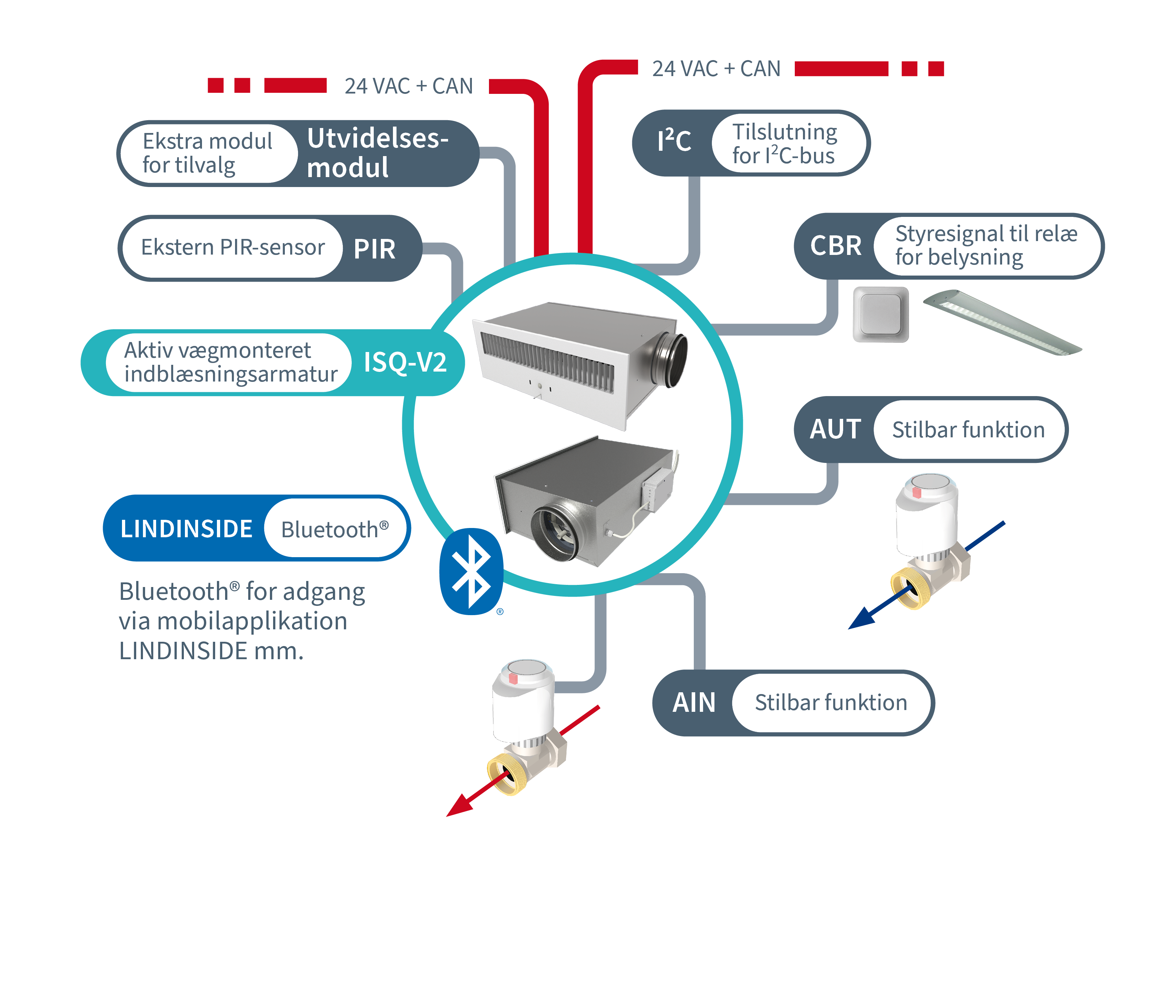 Ydelse, nøje materialevalg, forudmonterede og konfigurerede sensorer, Bluetooth® og netværkstilslutning gør ISQ-V2 til et stilfærdigt og intelligent valg, der fremtidssikrer bygningen. Behovsstyret ventilation minimerer energiforbruget og skaber optimalt indeklima dér, hvor det behøves.