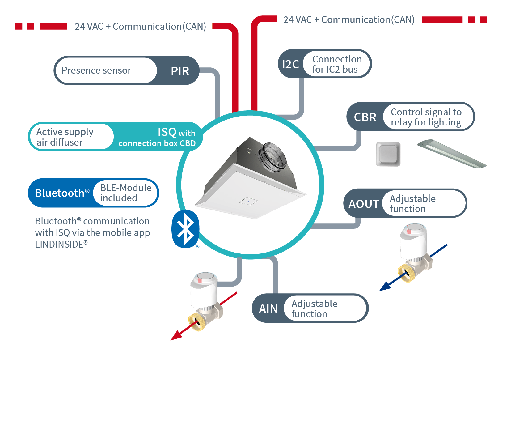 The unit is equipped with Bluetooth® for direct communication via the mobile app LINDINSIDE. ISQ is part of INSQAIR, a series of products that share a range of patented technical solutions.