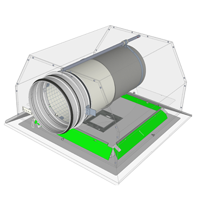 - Equipped with self-acting gap openings. Via a construction with damper blades in the diffuser part, the gap opening is adapted to the air flow in order to maintain a good mix of air and eliminate draft even at low air flows with sub-temperate air.
