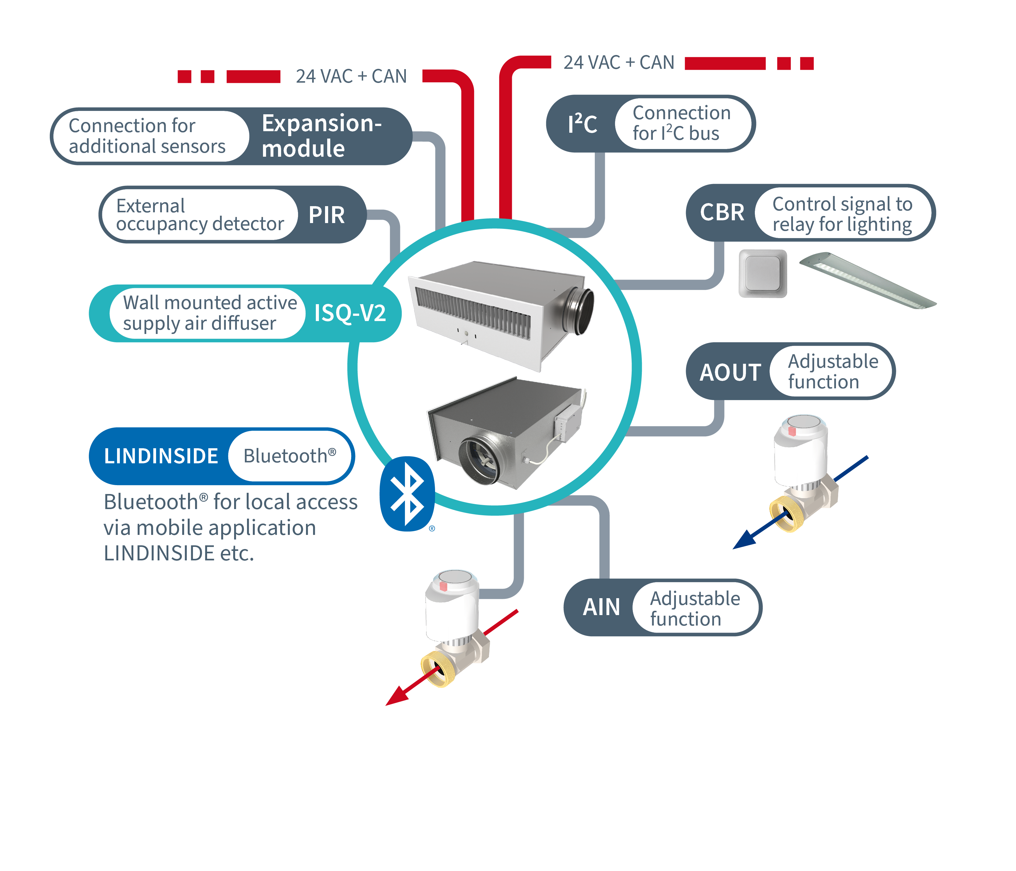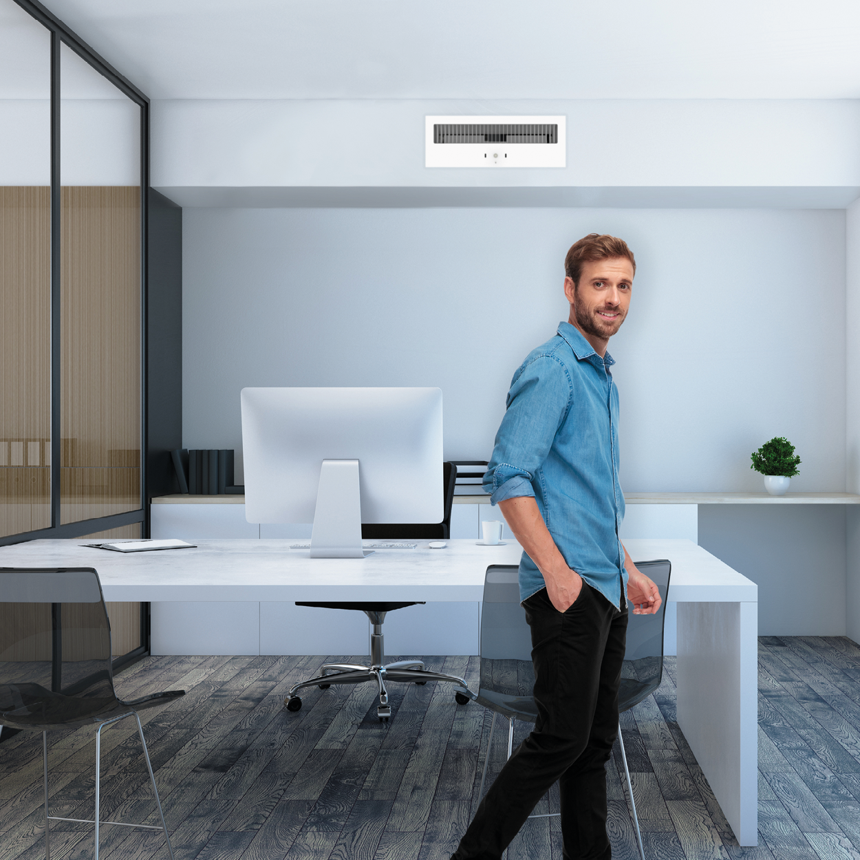 Our latest innovation, ISQ-V2, is our smart wall-mounted diffuser designed for spaces with limited ceiling height or for delivering air into rooms with very high ceilings. The unit has been improved in terms of sound performance and maximum airflow, and the front panel has been updated with a calmer, more refined design.