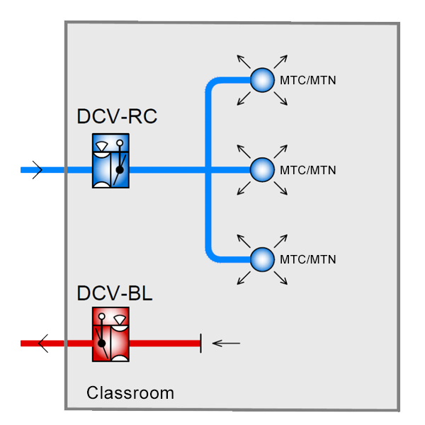 MTN, like MTC, is a self-activating, reactive supply air diffuser intended for demand-controlled ventilation where the air flow from several diffusers is adjusted by a common damper in the supply air duct.