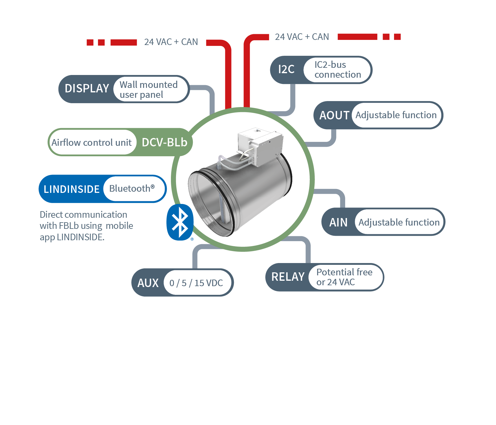 DCV-BLb is commissioned for either balancing, constant airflow control, measurement, or to operate as a slave unit.