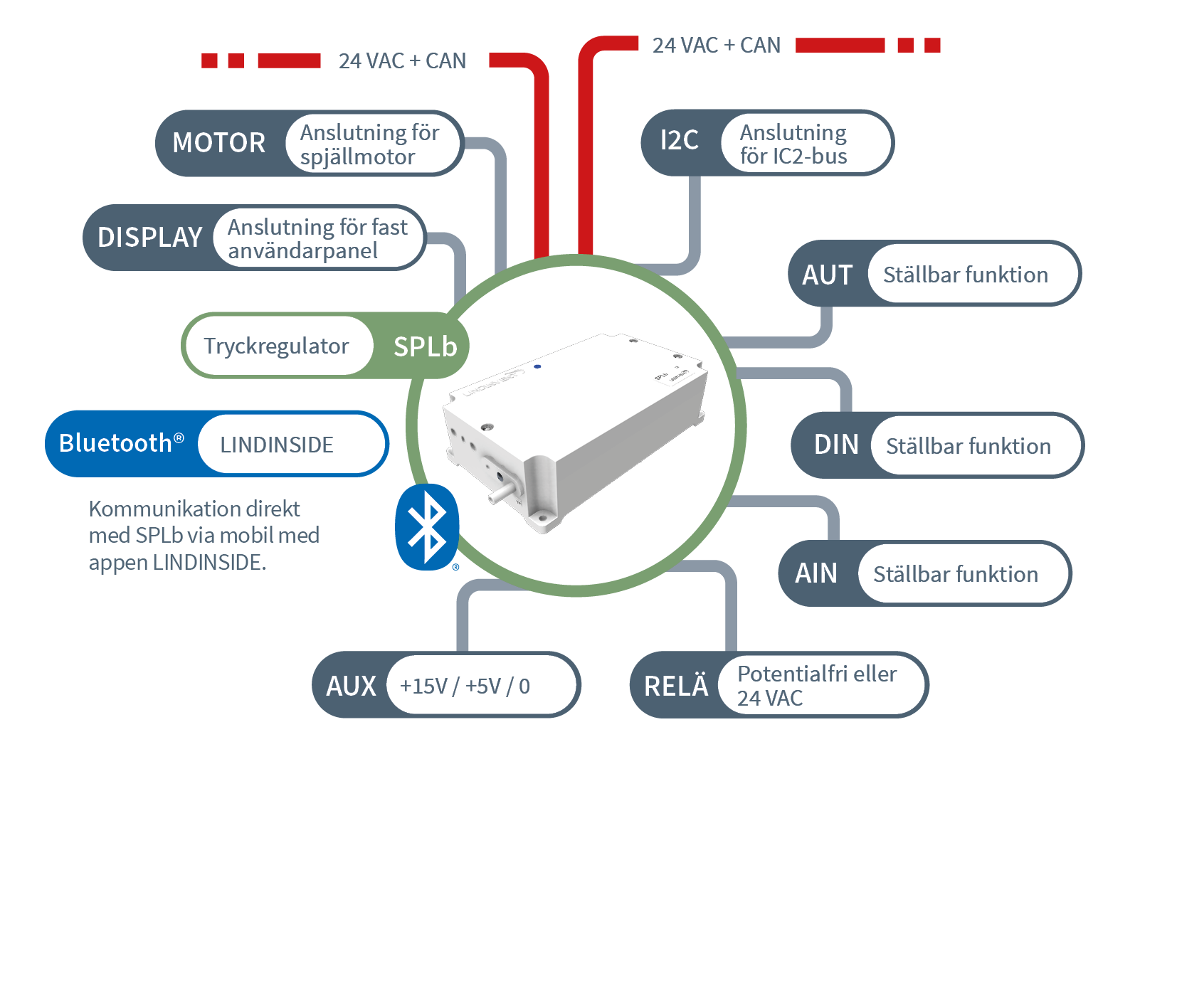 - Bluetooth® för åtkomst via mobilapplikation LINDINSIDE.