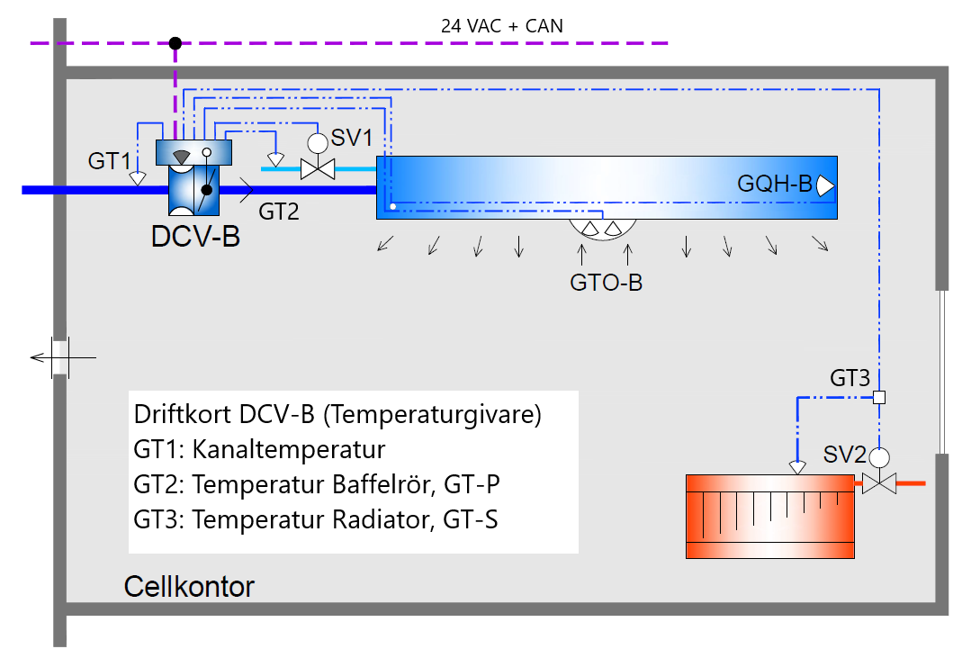 - Smart regulator (BCXb) för luft, kyla och värme med minimal installation för modernisering av befintlig CAV-baffel.