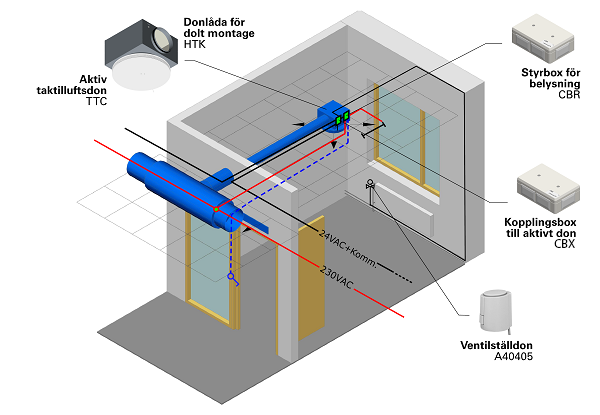 HTK-250/400 är avsedd för kanaldimension 250 och montage av det större aktiva tilluftsdonet TTC-400