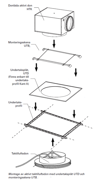 Undertaksplåt UTD finns som tillval och är anpassad för undertak med undertaksprofil kant A. Plåten underlättar vid montage och placering av don i undertak.