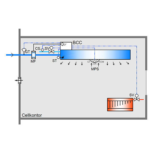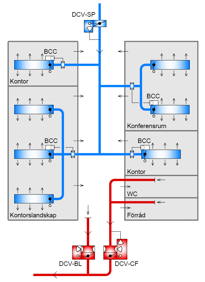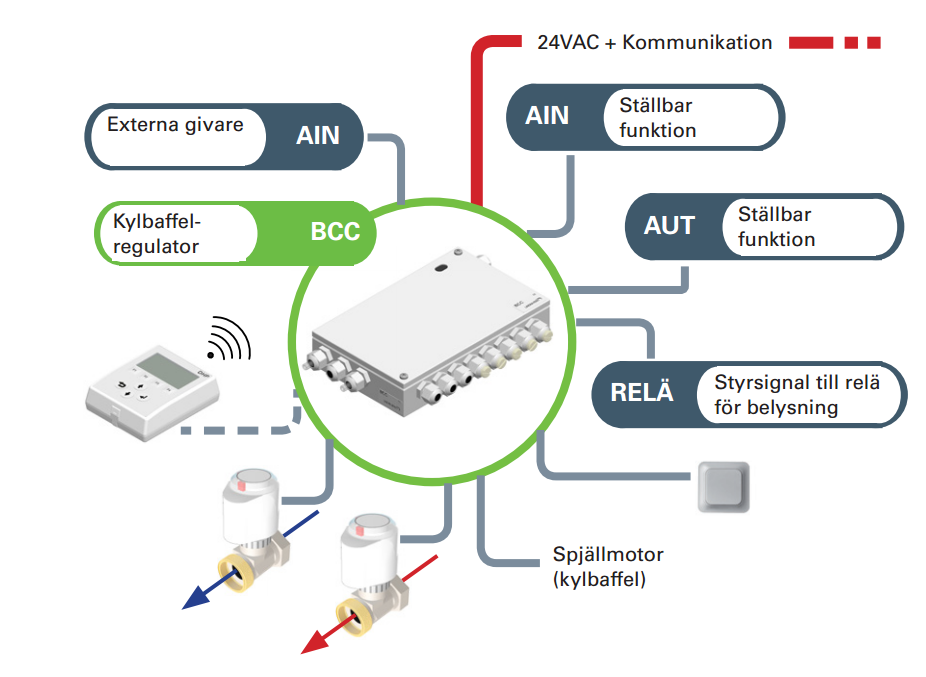 BCC är avsedd för reglering av rumsklimat via kylbafflar.