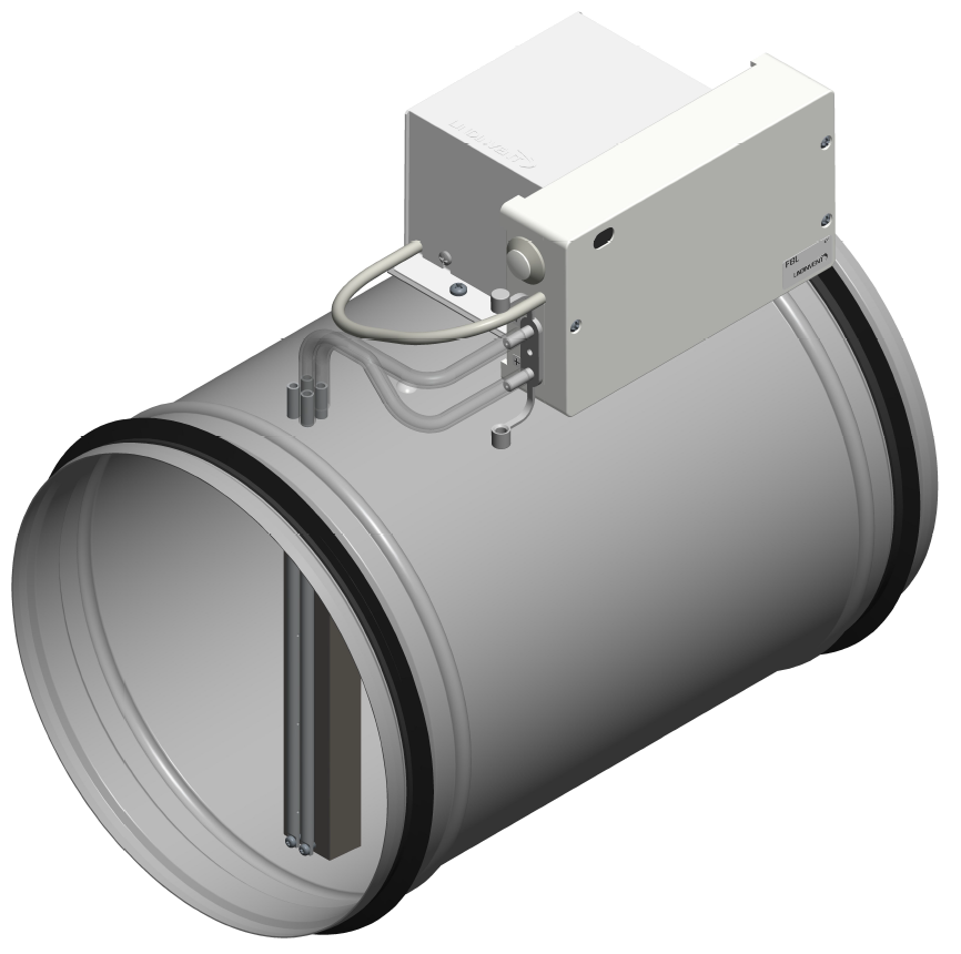 DCV-BL är en styrenhet som består av flödesregulator FBL, en spjällmotor och ett spjäll med mätfläns. Enheter med ett cirkulärt spjäll (Ø125-500) levereras fabriksmonterade. För övriga spjällstorlekar levereras spjäll, mätfläns, spjällmotor och regulator separat.