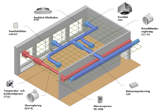 MTM lämpar sig särskilt väl för skolor, butiker, konferensrum, cafeterior etc. där behovsstyrd ventilation önskas och donet inte exteriört behöver likna det aktiva taktilluftsdonet TTC.