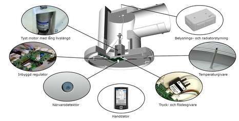 TTD har alla givare och regulatorn inbyggda i donet, vilket ger en optimal rumsstyrning som är anpassad till faktiskt behov. Donet har följande givare som standard:
