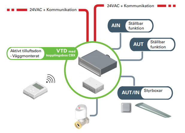 - Ventilationssystem med tilluftsdonet VTD tillsammans med utrustning för frånluftsbalansering minskar energiförbrukningen och bidrar aktivt till ett bra inomhusklimat.